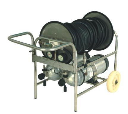 是由移動式供氣源和呼吸組合而成,備有30m固定管1根、10m長管兩根,*大使用距離達50m,配有2套呼吸面罩,可供2人同時使用。